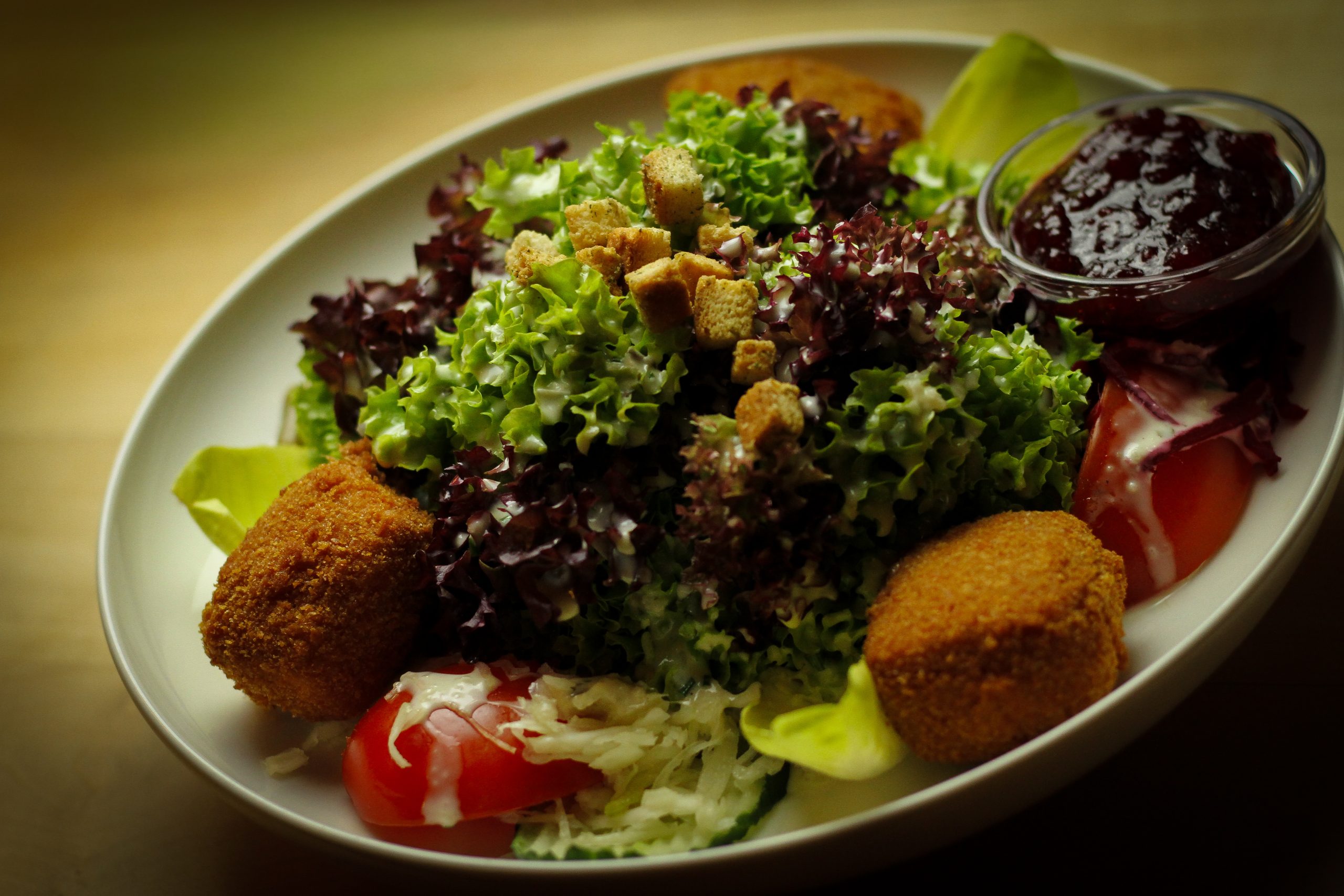 €18,90Bunter Salat mit gebackenem Camembert, Preiselbeeren und Hausdressing